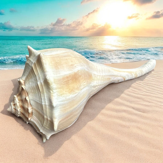 Giant Conch Seashell White Brown Pattern Rare Big Large Ocean Sea Shell Coastal Decor Nautical Centerpiece Decoration Beach Lovers Special Collection Gift