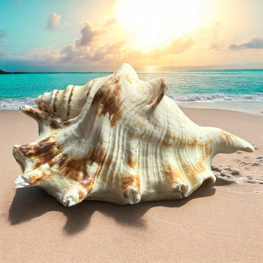 Large Conch Seashell Spiky Natural Rare White Brown Pattern Big Centerpiece Sea Shell Beach Home Decor Art Craft Nautical Ocean Decoration