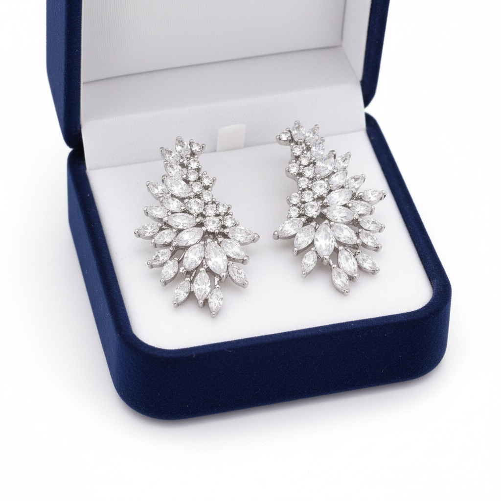 Elevate your jewelry collection to breathtaking new heights with these Luminous White Crystal Stud Earrings, designed for the woman who appreciates the finer things in life as a definitive statement of grace and refined taste. Each earring features a centerpiece of ultra-premium cubic zirconia, meticulously selected for its exceptional clarity and colorless purity, and expertly faceted to capture and reflect light from every single angle to offer a high-end, brilliant glow that rivals the finest diamonds and ensures you stand out in any room. These earrings serve as a testament to luxury and high-quality craftsmanship, with every stone secured in a precision-engineered setting designed to maximize natural light exposure, allowing light to travel through the stone from multiple entry points to produce a spectacular "fire" and "scintillation" that remains vibrant from the moment you put them on until the final dance of the night. Whether you are walking down the aisle on your wedding day, making an entrance at a formal gala, or heading out for a glamorous night on the town, these chic statement studs provide the definitive touch of sophisticated sparkle, featuring a timeless silhouette that is bold enough to serve as a standalone focal point yet subtle enough to complement an intricate necklace or a detailed gown. With a sharp focus on modern elegance, these studs bridge the gap between classic tradition and contemporary fashion to act as a timeless investment in style, making them an unforgettable gift for a bride-to-be, a loved one celebrating an anniversary, or a treat for yourself to commemorate a personal milestone while providing a smooth, polished finish for all-day comfort and a secure fit that allows you to embrace the brilliance you deserve and let your light shine through at any world-class venue.
